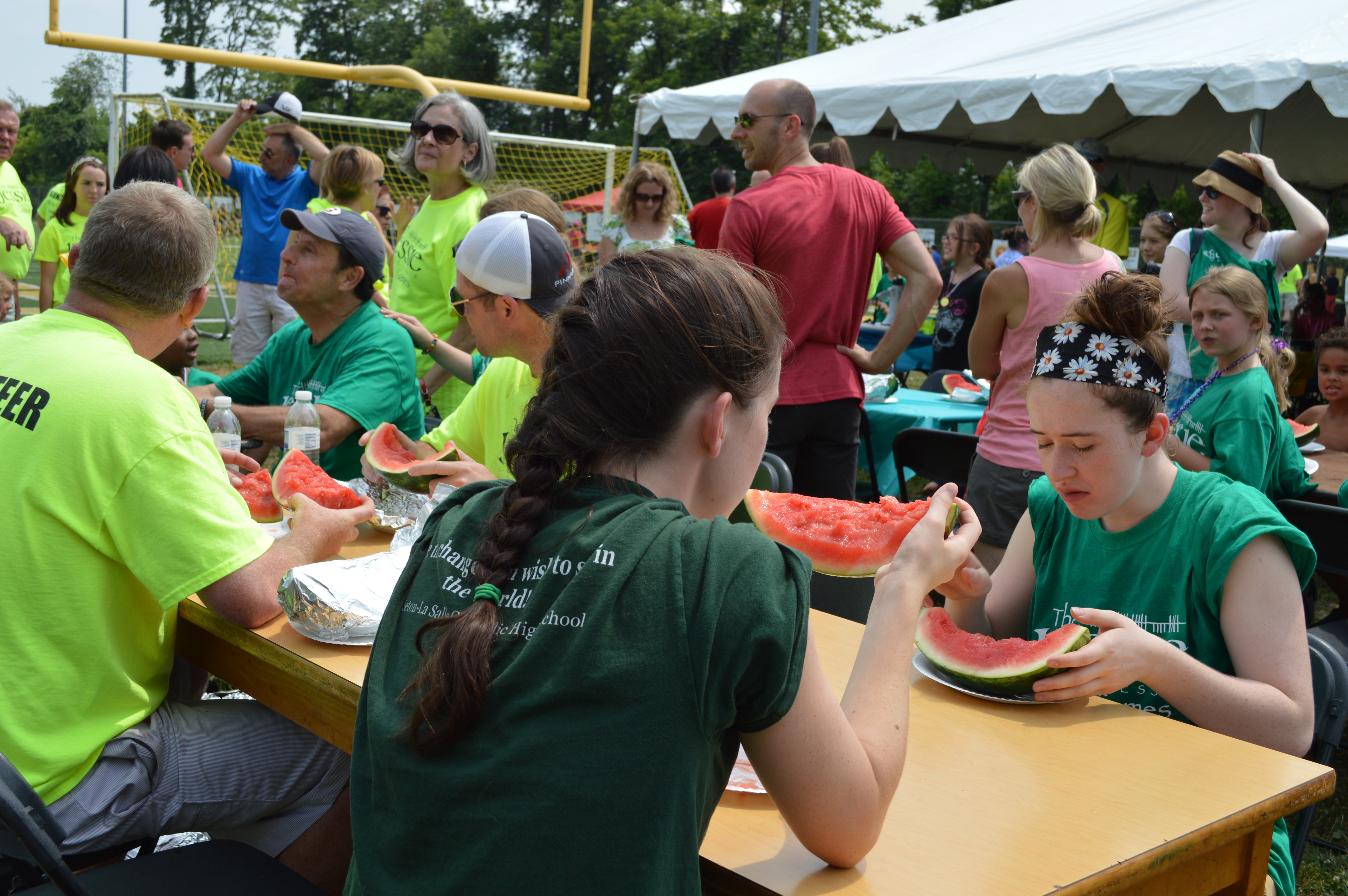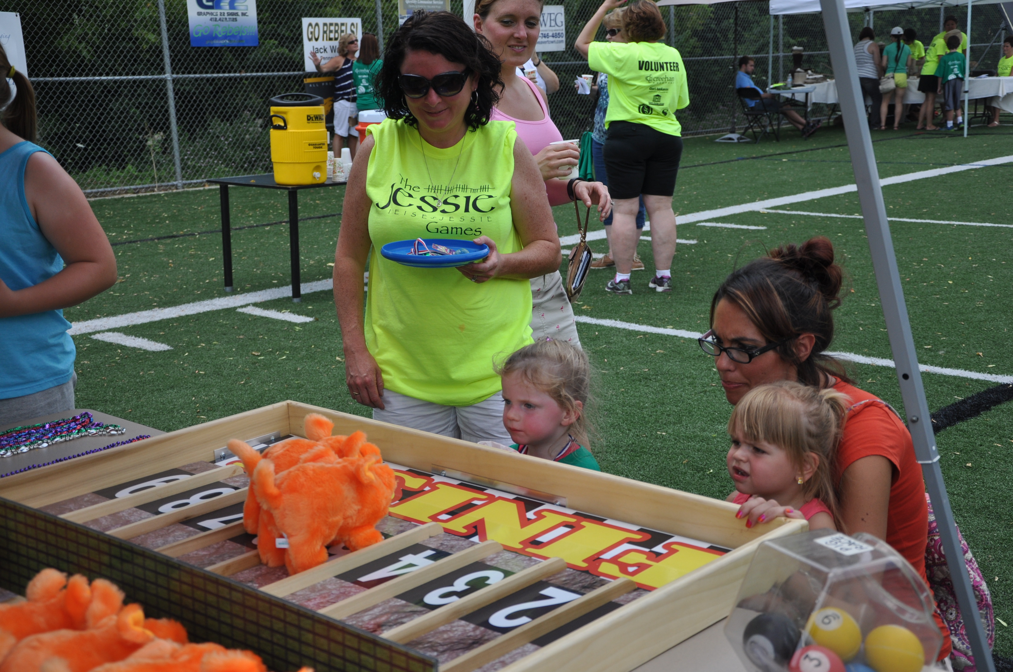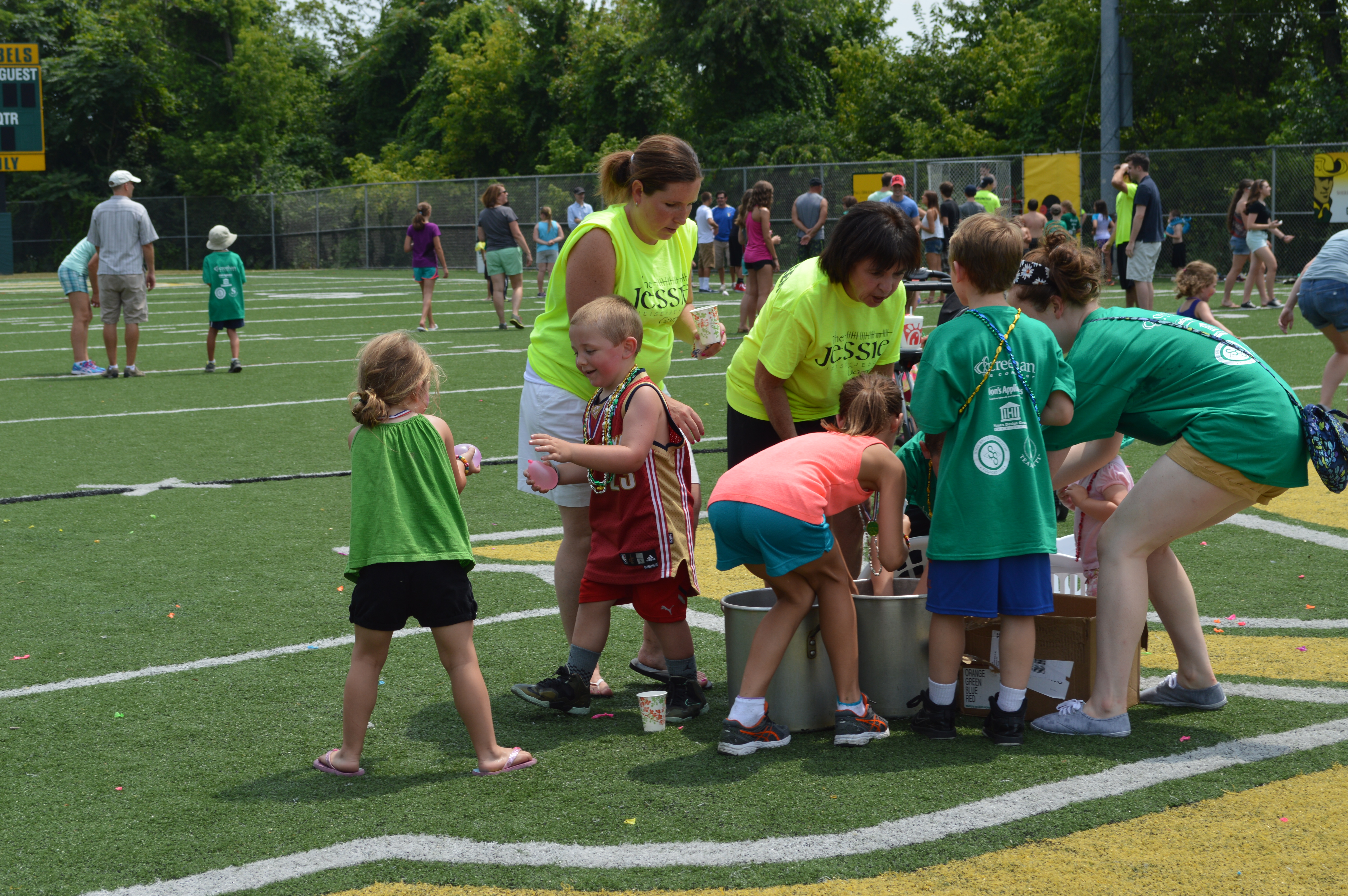 We quickly realized certain activities would be repeat attractions at the annual event: dunk tanks, a family water balloon toss, and watermelon eating contests.Children, wearing their green Jessie Games T-shirts, raced, and cooled off with sno-cones. With much encouragement, the principal of St. Anne School went in the dunk tank and so did many others.