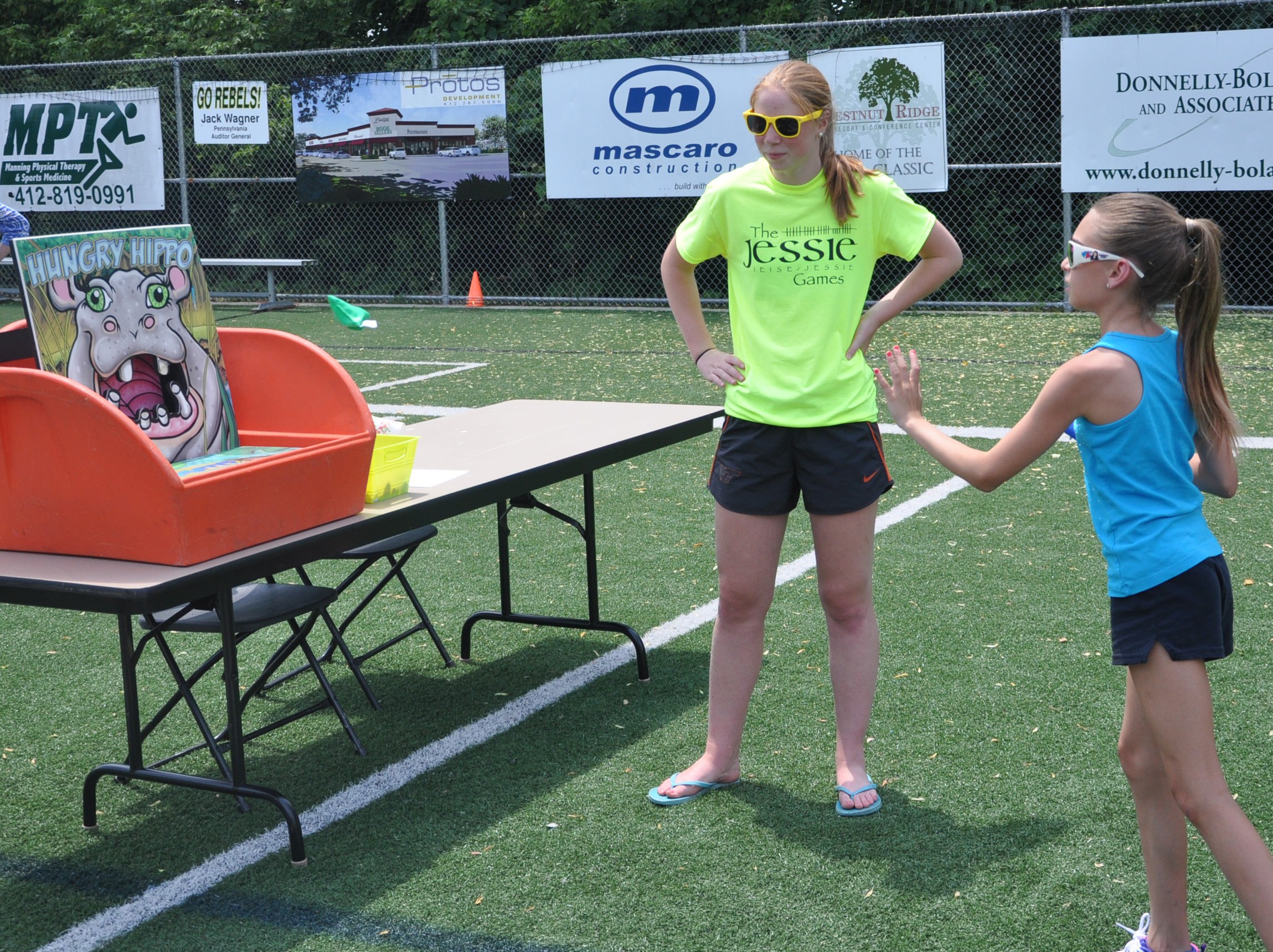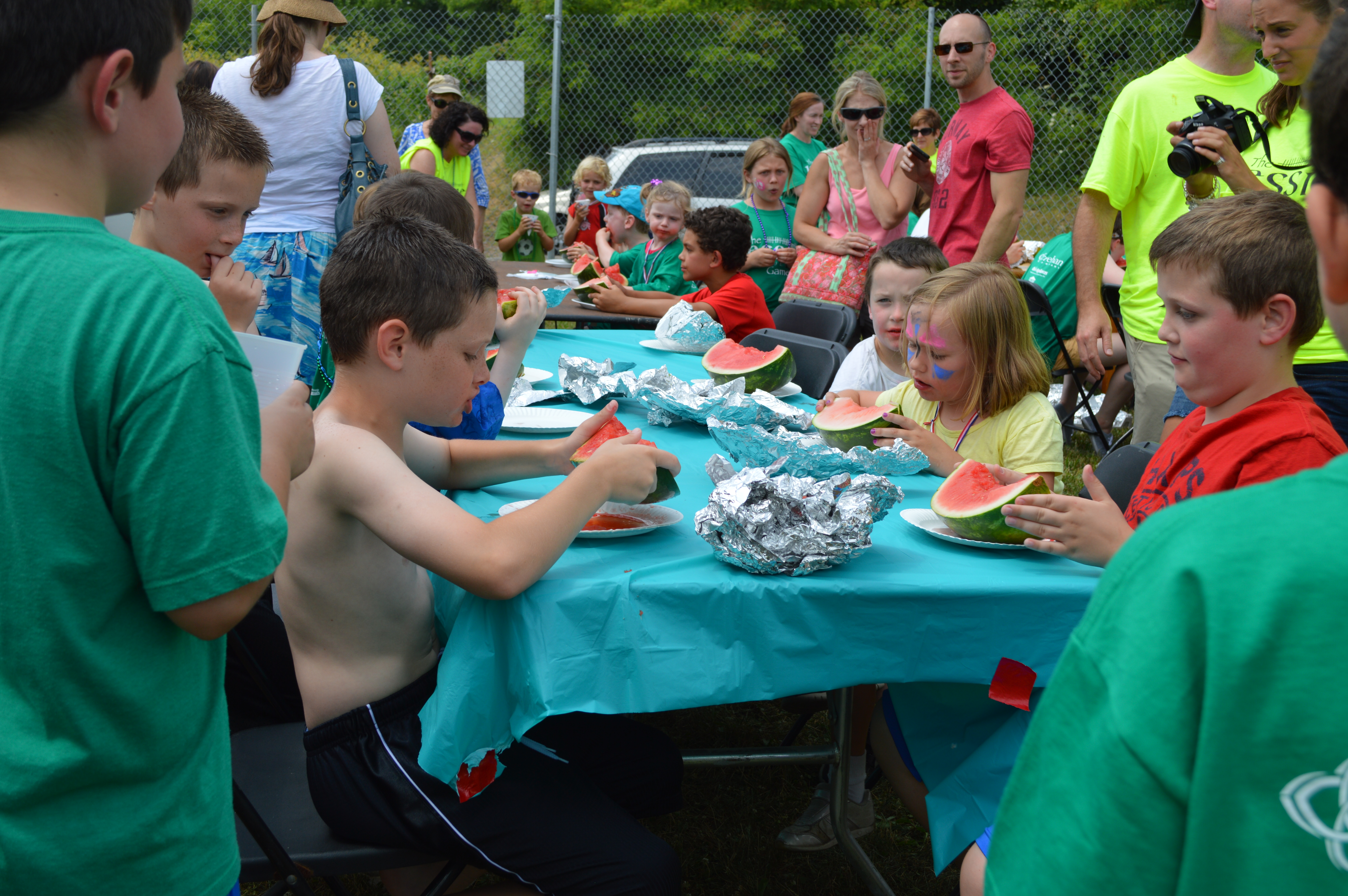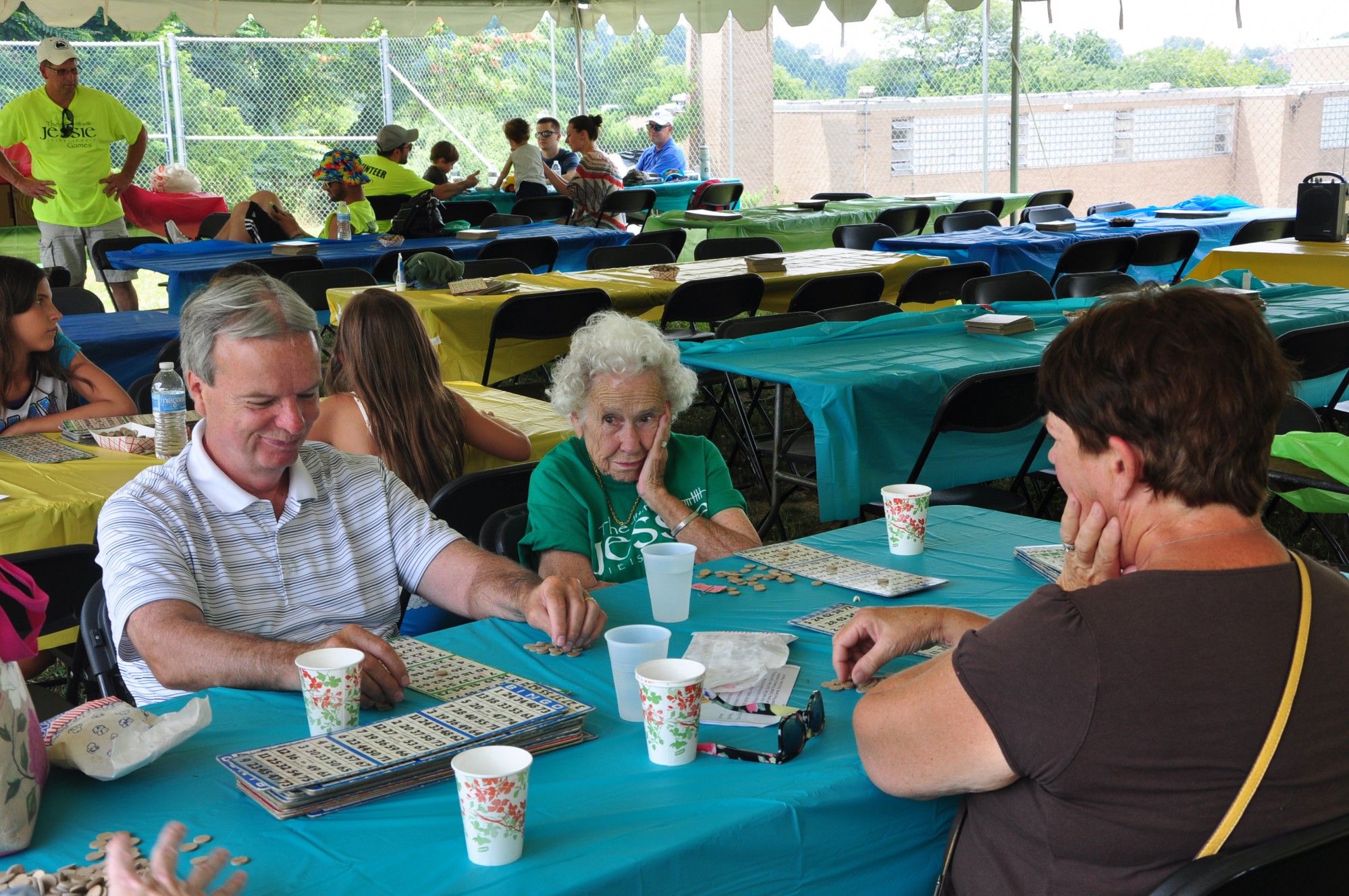 We quickly realized certain activities would be repeat attractions at the annual event: dunk tanks, a family water balloon toss, and watermelon eating contests.Children, wearing their green Jessie Games T-shirts, raced, and cooled off with sno-cones. With much encouragement, the principal of St. Anne School went in the dunk tank and so did many others.
